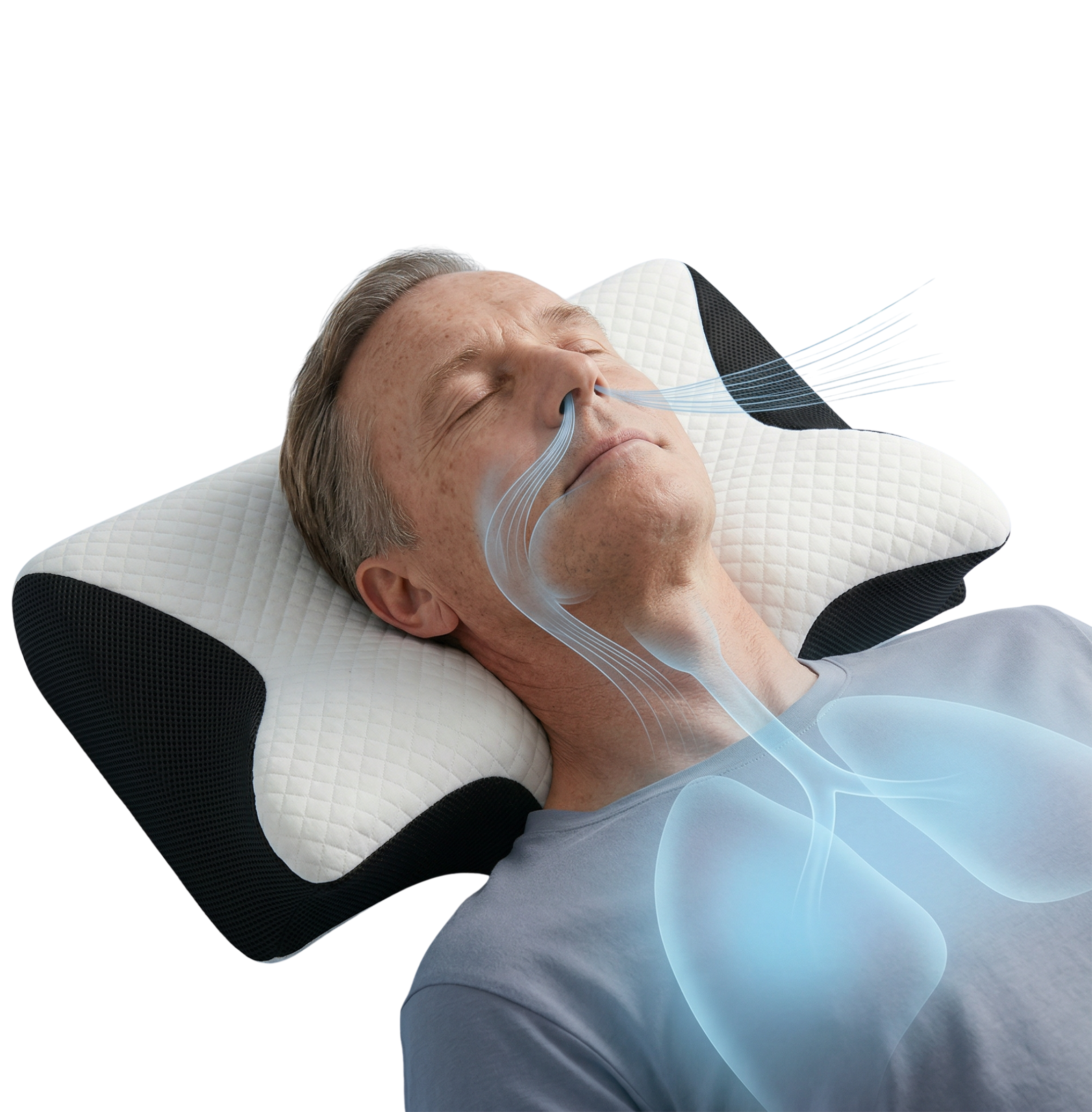 The built-in side pockets encourage side sleeping, clinically recognised as the best position for reducing snoring and sleep apnea symptoms.