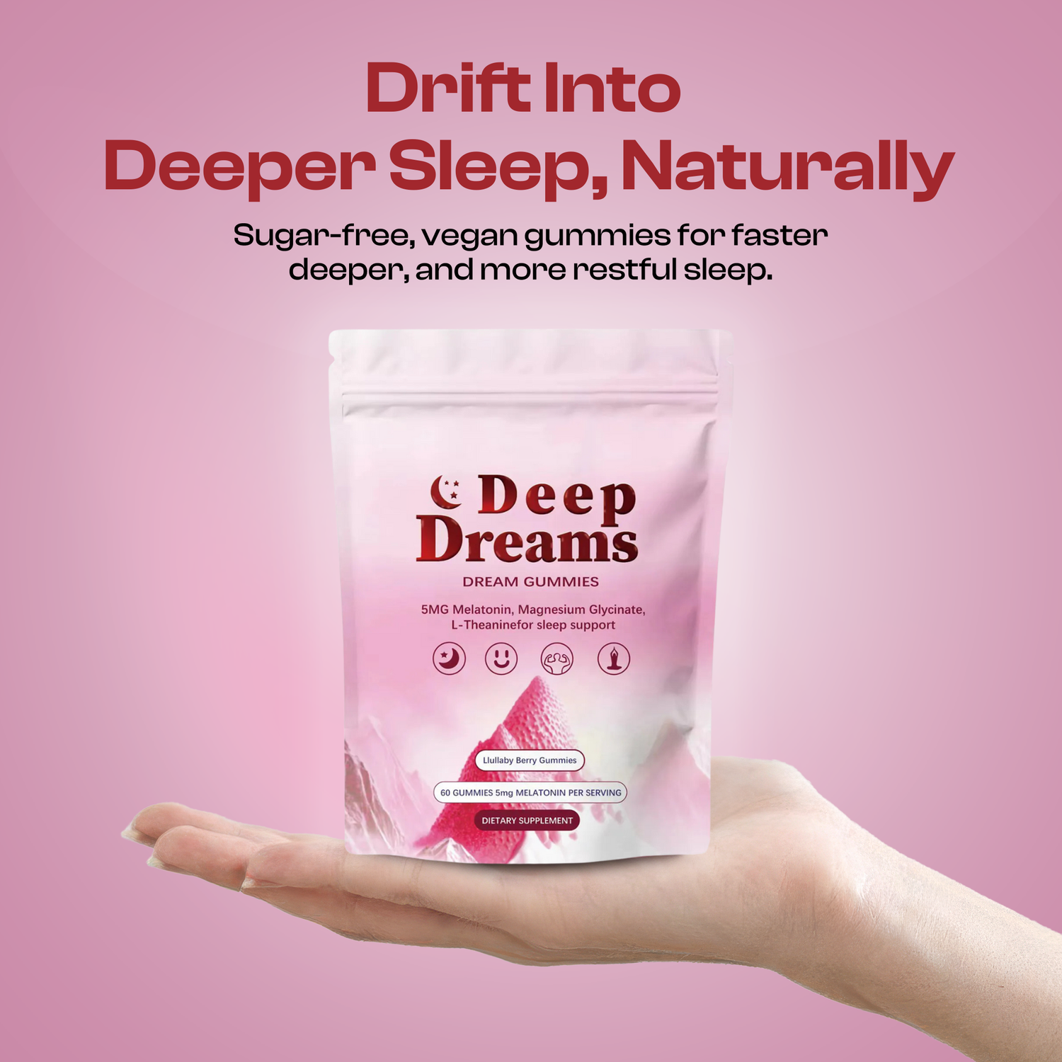 • Step 1: Take 2 gummies 30–60 minutes before bed. Chew slowly and allow your body to unwind.
